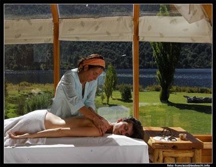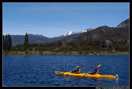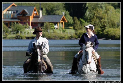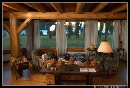 TARIFA DE ALOJAMIENTO EN DOLARES - incluye iva. Esta exclusiva estancia del norte de la Patagonia, cuenta con una lujosa hostería, con vista al lago, a las montañas, a los bosques y las cascadas. Adicionalmente se puede alquilar cabañas y casas dentro de la estancia por dia o semana. Peuma Hue ... "Lugar de los Sueños" en lenguaje Mapuche. El paisaje en Peuma Hue es impactante y variado hacia donde uno mire. Al norte y frente de la casa principal, el lago Gutiérrez baña las costas con sus aguas azules de origen glaciario y el color verde-turquesa de la bahía de Peuma Hue. Al oeste, las paredes graníticas escarpadas del Cerro D´Agostini se yerguen majestuosas sobre la bahía transmitiendo energía como sólo un lugar sagrado lo puede hacer. Al este, los ondulantes cerros de un plegamiento antiguo, despiertan armonía y equilibrio en el alma. Al sur, el valle de la Divisoria de Aguas, divide las aguas que van hacia los océanos Pacífico y Atlántico. Sus 2 km de costa de lago, la escarpada ladera del Cerro D´Agostini y el valle de la Divisoria de aguas, ofrece todo tipo de terreno para lo que Ud prefiera hacer: remar en nuestros kayaks o duckies a la luz del atardecer; paseos a pie o a caballo; picadas fáciles en los valles o escarpadas subidas por rocas mágicas entre potentes cascadas y mansos pozones; escalada en roca; bosques fabulosos que se pueblan con variados colores de flores silvestres; pescar desde la playa o paseando en el gomón; leer bajo un coihue al lado del arroyo.